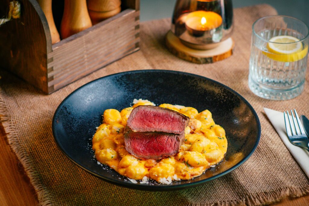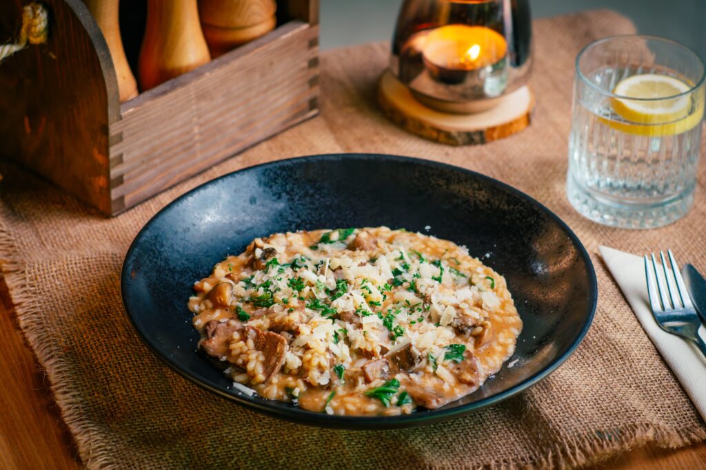 s grilovaným hovädzím rumpom, baby špenátom, lesnými hubami a parmezánom, 100/200 g, obsahuje: 7